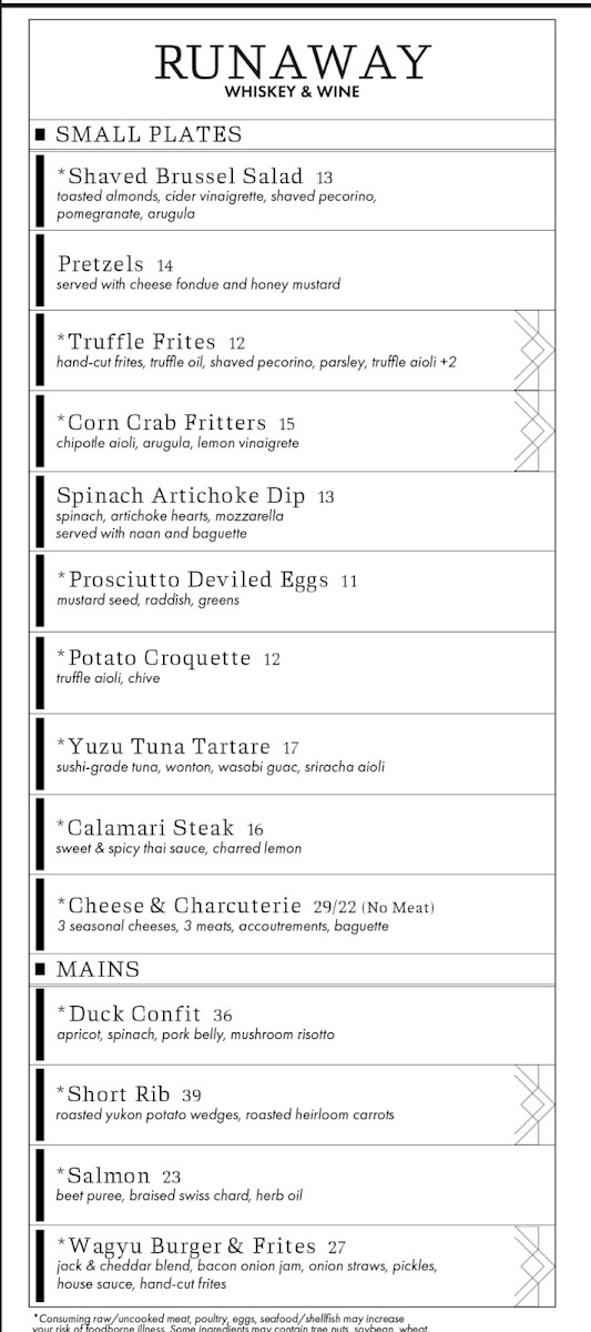 Welcome to Runaway Whiskey & Wine, a delightful bar and restaurant nestled in the heart of Charlotte. This vibrant establishment offers a well-curated menu designed for lovers of small plates and exquisite main dishes.