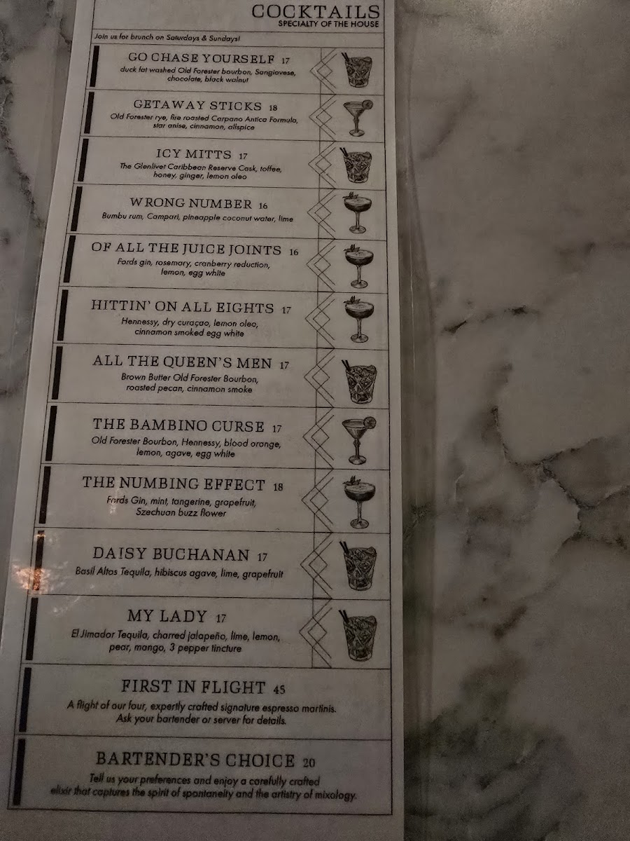The small plates, like the Shaved Brussel Salad and Truffle Frites, shine with fresh, bold flavors, perfect for sharing or a light snack. For mains, the Duck Confit and Wagyu Burger are standout choices, each prepared with attention to detail and an emphasis on quality ingredients.